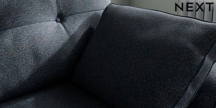 7.2.10 Stamford Buttoned Back Small Sofa Chaise - Right Hand Tweedy Chenille Navy Blue Large Square Angle - Brushed Brass | Made Click here to use our website with more accessibility support, for example screen readers