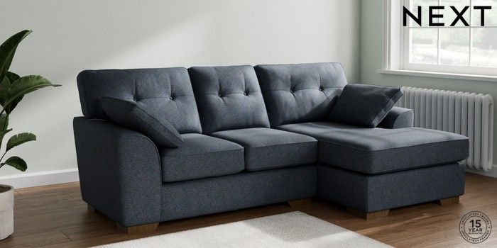 7.2.10 Stamford Buttoned Back Small Sofa Chaise - Right Hand Tweedy Chenille Navy Blue Large Square Angle - Mid | Made Click here to use our website with more accessibility support, for example screen readers