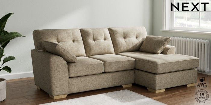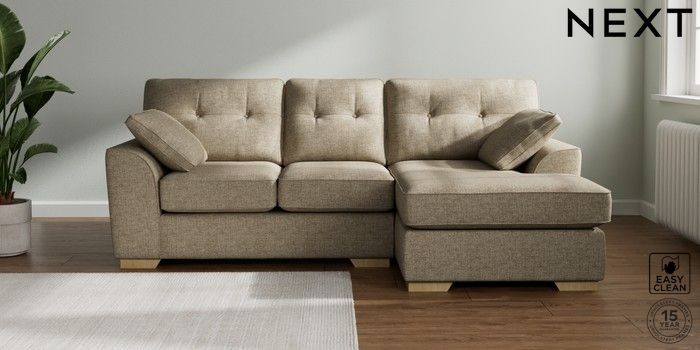 7.2.10 Stamford Buttoned Back Small Sofa Chaise - Right Hand Woven Chenille Easy Clean Mid Natural Large Square Angle - Light | Made Click here to use our website with more accessibility support, for example screen readers