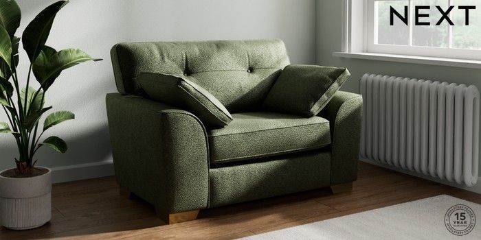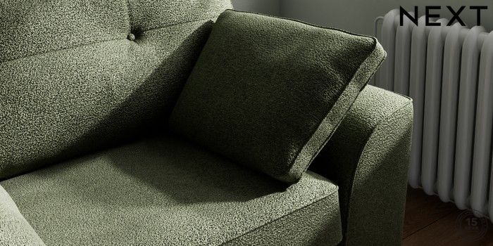 7.2.10 Stamford Buttoned Back Snuggle Boucle Chenille Dark Moss Green Large Square Angle - Brushed Brass | Made Click here to use our website with more accessibility support, for example screen readers
