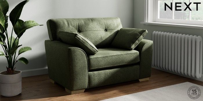 7.2.10 Stamford Buttoned Back Snuggle Boucle Chenille Dark Moss Green Large Square Angle - Light | Made Click here to use our website with more accessibility support, for example screen readers