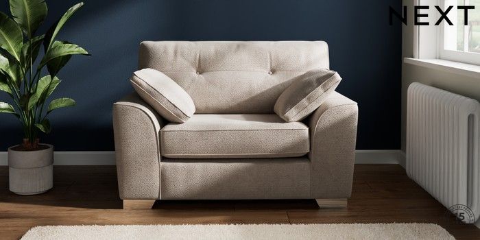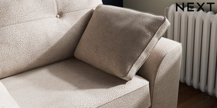 7.2.10 Stamford Buttoned Back Snuggle Boucle Chenille Light Natural Large Square Angle - Chrome Metal | Made Click here to use our website with more accessibility support, for example screen readers