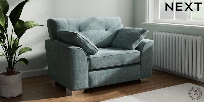 7.2.10 Stamford Buttoned Back Snuggle Chunky Chenille Light Teal Green Large Square Angle - Chrome Metal | Made Click here to use our website with more accessibility support, for example screen readers