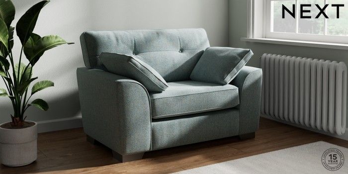 7.2.10 Stamford Buttoned Back Snuggle Chunky Marl Mid Blue Large Square Angle - Gunmetal | Made Click here to use our website with more accessibility support, for example screen readers