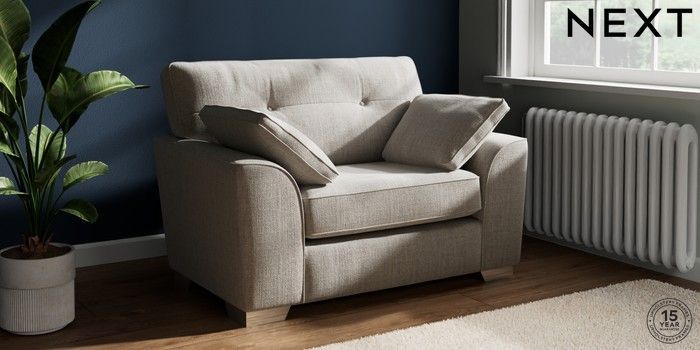 7.2.10 Stamford Buttoned Back Snuggle Chunky Weave Dove Grey Large Square Angle - Chrome Metal | Made Click here to use our website with more accessibility support, for example screen readers