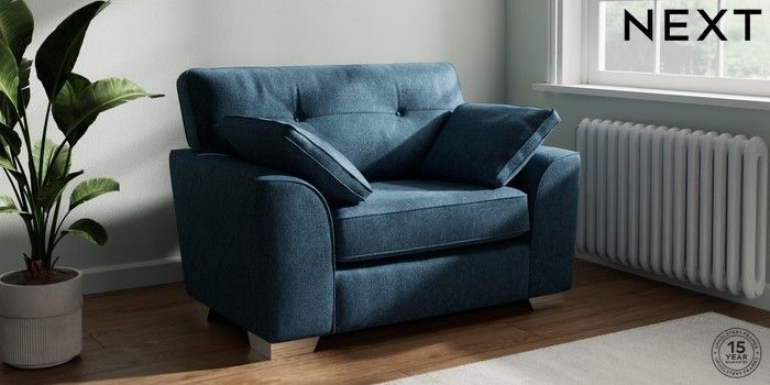 7.2.10 Stamford Buttoned Back Snuggle Cotswold Chenille Dark Blue Large Square Angle - Chrome Metal | Made Click here to use our website with more accessibility support, for example screen readers