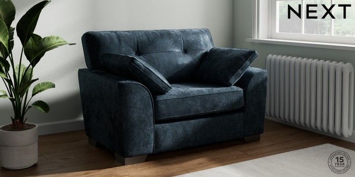 7.2.10 Stamford Buttoned Back Snuggle Distressed Velour Midnight Blue Large Square Angle - Gunmetal | Made Click here to use our website with more accessibility support, for example screen readers