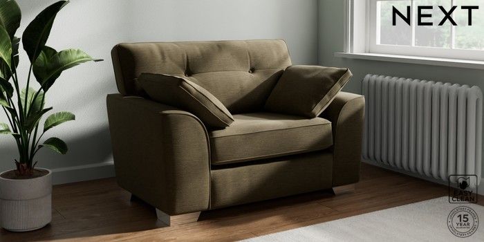 7.2.10 Stamford Buttoned Back Snuggle Fine Chenille Easy Clean Dark Moss Green Large Square Angle - Chrome Metal | Made Click here to use our website with more accessibility support, for example screen readers