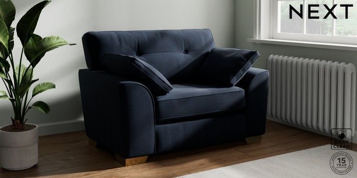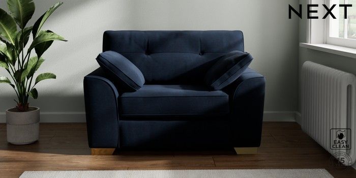 7.2.10 Stamford Buttoned Back Snuggle Fine Chenille Easy Clean Dark Navy Blue Large Square Angle - Brushed Brass | Made Click here to use our website with more accessibility support, for example screen readers