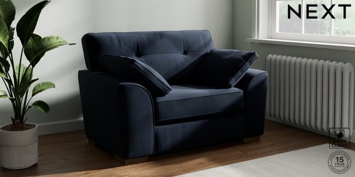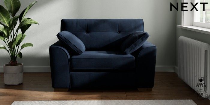 7.2.10 Stamford Buttoned Back Snuggle Fine Chenille Easy Clean Dark Navy Blue Large Square Angle - Mid | Made Click here to use our website with more accessibility support, for example screen readers