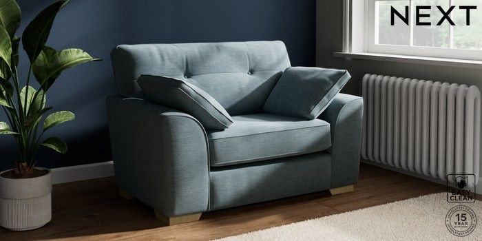 7.2.10 Stamford Buttoned Back Snuggle Fine Chenille Easy Clean Mid Blue Large Square Angle - Light | Made Click here to use our website with more accessibility support, for example screen readers