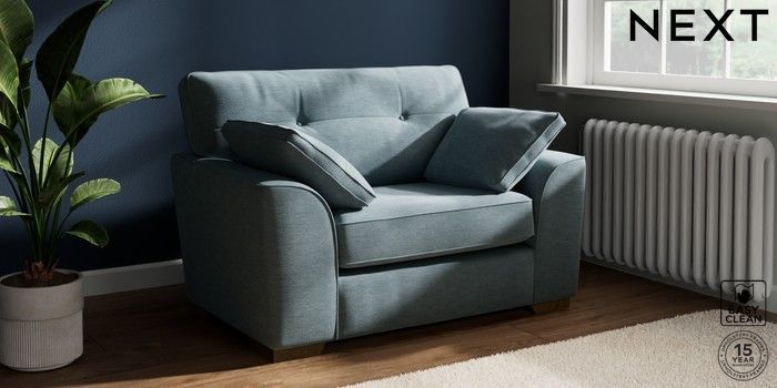 7.2.10 Stamford Buttoned Back Snuggle Fine Chenille Easy Clean Mid Blue Large Square Angle - Mid | Made Click here to use our website with more accessibility support, for example screen readers