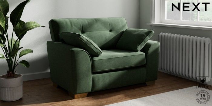7.2.10 Stamford Buttoned Back Snuggle Fine Chenille Easy Clean Mid Khaki Green Large Square Angle - Brushed Brass | Made Click here to use our website with more accessibility support, for example screen readers