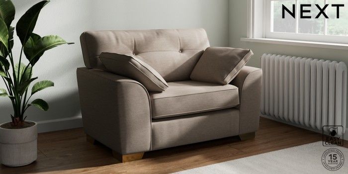 7.2.10 Stamford Buttoned Back Snuggle Fine Chenille Easy Clean Mid Taupe Brown Large Square Angle - Brushed Brass | Made Click here to use our website with more accessibility support, for example screen readers