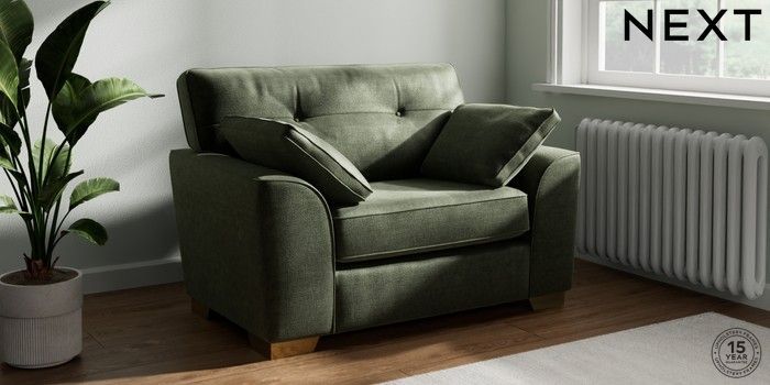 7.2.10 Stamford Buttoned Back Snuggle Luxe Chenille Mid Green Large Square Angle - Brushed Brass | Made Click here to use our website with more accessibility support, for example screen readers