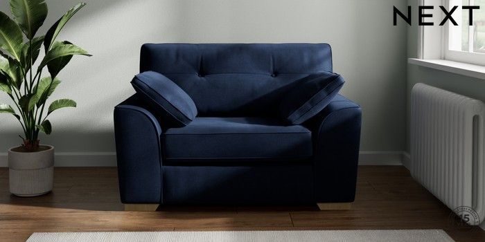 7.2.10 Stamford Buttoned Back Snuggle Luxe Chenille Navy Blue Large Square Angle - Light | Made Click here to use our website with more accessibility support, for example screen readers