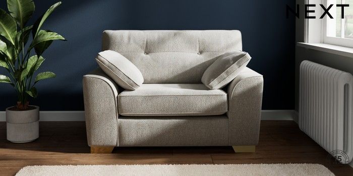7.2.10 Stamford Buttoned Back Snuggle Multi Weave Light Blue Large Square Angle - Brushed Brass | Made Click here to use our website with more accessibility support, for example screen readers