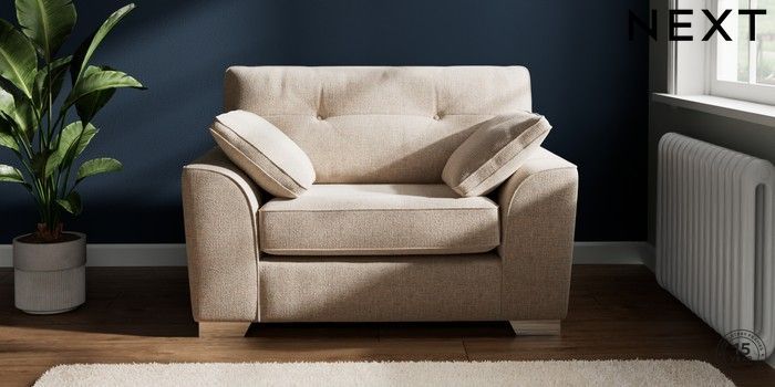 7.2.10 Stamford Buttoned Back Snuggle Multi Weave Mid Natural Large Square Angle - Chrome Metal | Made Click here to use our website with more accessibility support, for example screen readers
