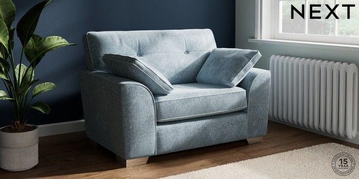 7.2.10 Stamford Buttoned Back Snuggle Plush Chenille Light Blue Large Square Angle - Chrome Metal | Made Click here to use our website with more accessibility support, for example screen readers