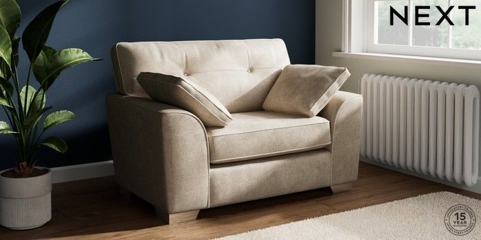 7.2.10 Stamford Buttoned Back Snuggle Plush Chenille Light Natural Large Square Angle - Chrome Metal | Made Click here to use our website with more accessibility support, for example screen readers