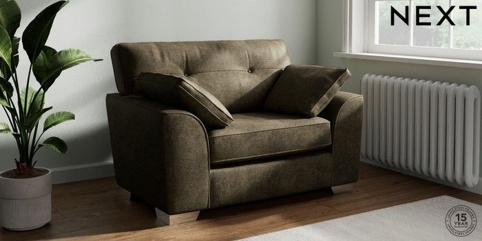7.2.10 Stamford Buttoned Back Snuggle Plush Chenille Moss Green Large Square Angle - Chrome Metal | Made Click here to use our website with more accessibility support, for example screen readers