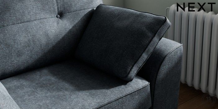 7.2.10 Stamford Buttoned Back Snuggle Plush Chenille Slate Blue Large Square Angle - Brushed Brass | Made Click here to use our website with more accessibility support, for example screen readers