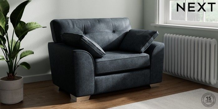 7.2.10 Stamford Buttoned Back Snuggle Plush Chenille Slate Blue Large Square Angle - Chrome Metal | Made Click here to use our website with more accessibility support, for example screen readers