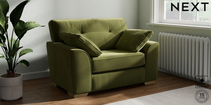7.2.10 Stamford Buttoned Back Snuggle Plush Velvet Easy Clean Mid Olive Green Large Square Angle - Light | Made Click here to use our website with more accessibility support, for example screen readers