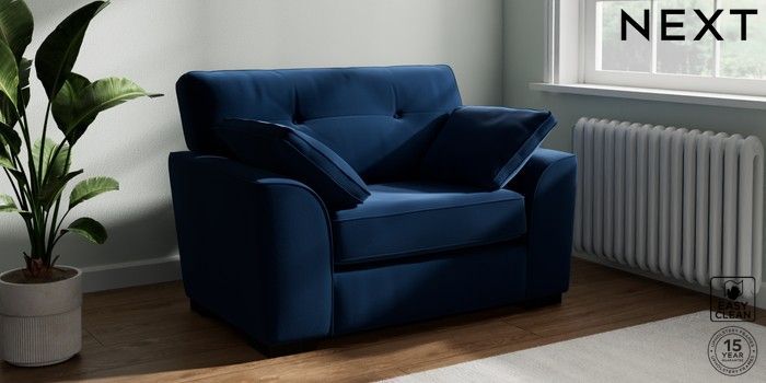 7.2.10 Stamford Buttoned Back Snuggle Plush Velvet Easy Clean Navy Blue Large Square Angle - Dark | Made Click here to use our website with more accessibility support, for example screen readers
