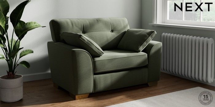 7.2.10 Stamford Buttoned Back Snuggle Relaxed Linen Look Dark Green Large Square Angle - Brushed Brass | Made Click here to use our website with more accessibility support, for example screen readers