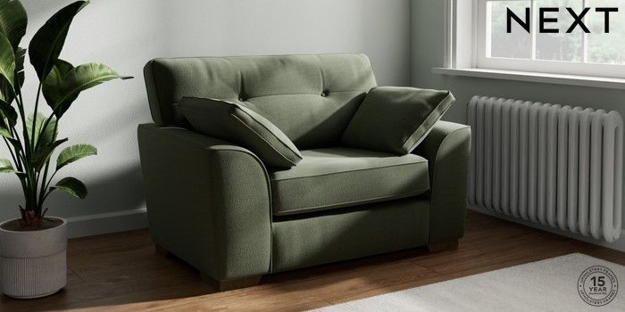 7.2.10 Stamford Buttoned Back Snuggle Relaxed Linen Look Dark Green Large Square Angle - Mid | Made Click here to use our website with more accessibility support, for example screen readers