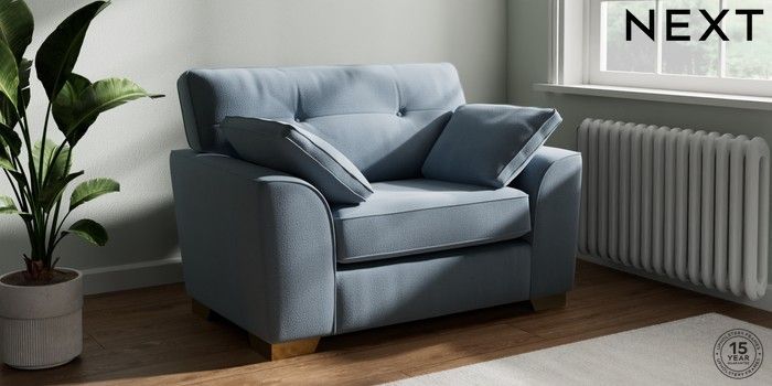 7.2.10 Stamford Buttoned Back Snuggle Relaxed Linen Look Mid Blue Large Square Angle - Brushed Brass | Made Click here to use our website with more accessibility support, for example screen readers