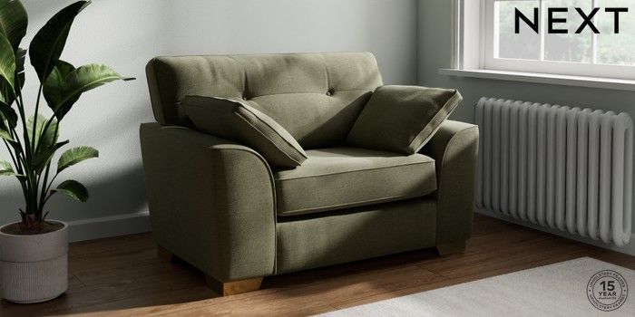 7.2.10 Stamford Buttoned Back Snuggle Ripple Chenille Mid Moss Green Large Square Angle - Brushed Brass | Made Click here to use our website with more accessibility support, for example screen readers