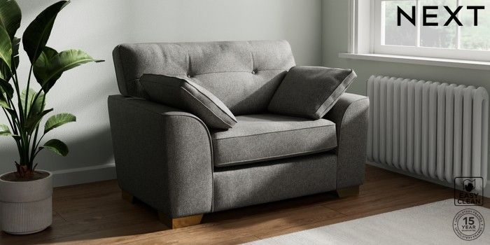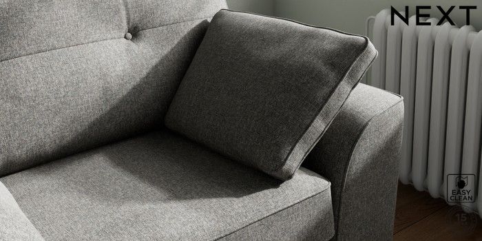 7.2.10 Stamford Buttoned Back Snuggle Tweedy Blend Easy Clean Dark Grey Large Square Angle - Brushed Brass | Made Click here to use our website with more accessibility support, for example screen readers