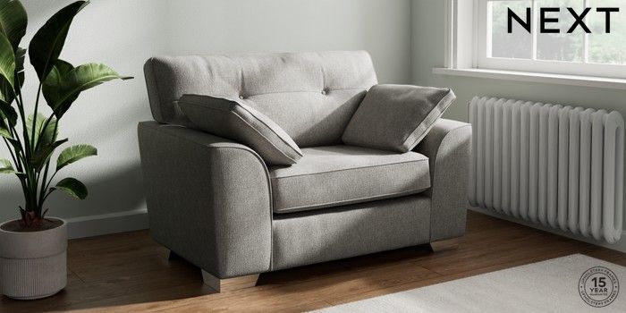 7.2.10 Stamford Buttoned Back Snuggle Tweedy Chenille Mid Grey Large Square Angle - Chrome Metal | Made Click here to use our website with more accessibility support, for example screen readers