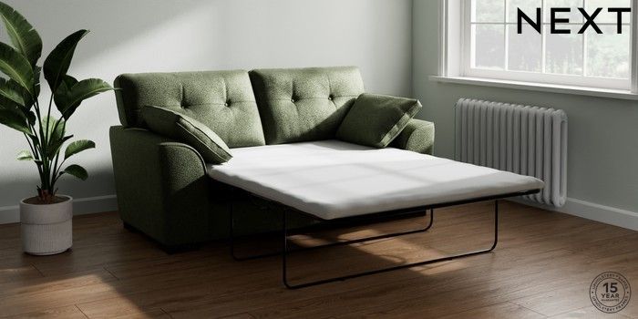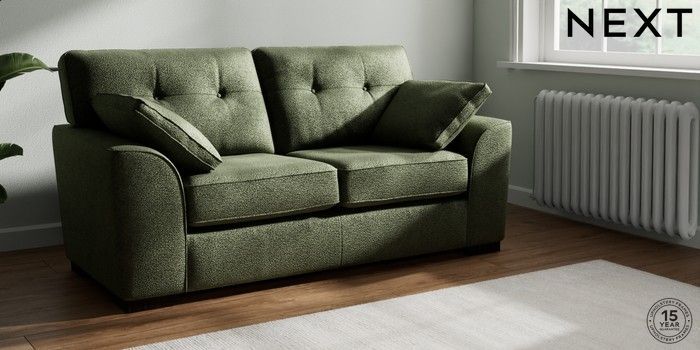 7.2.10 Stamford Buttoned Back Sofa Bed Boucle Chenille Dark Moss Green Large Square Angle - Dark | Made Click here to use our website with more accessibility support, for example screen readers