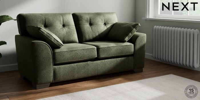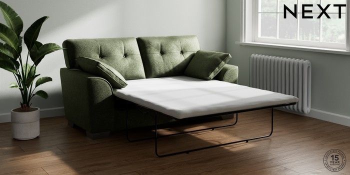 7.2.10 Stamford Buttoned Back Sofa Bed Boucle Chenille Dark Moss Green Large Square Angle - Gunmetal | Made Click here to use our website with more accessibility support, for example screen readers