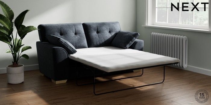7.2.10 Stamford Buttoned Back Sofa Bed Boucle Chenille Dark Slate Blue Large Square Angle - Light | Made Click here to use our website with more accessibility support, for example screen readers