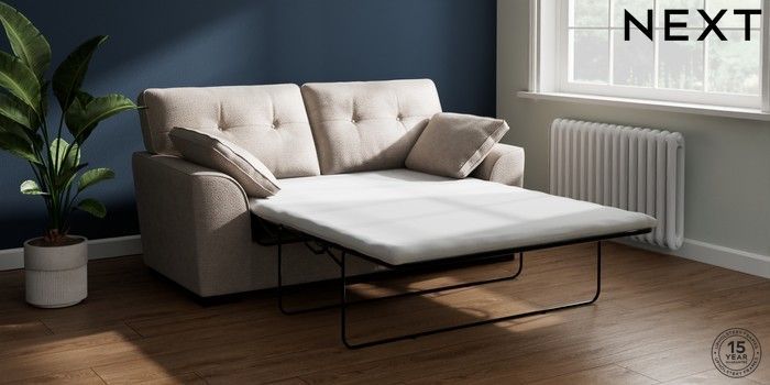 7.2.10 Stamford Buttoned Back Sofa Bed Boucle Chenille Light Natural Large Square Angle - Dark | Made Click here to use our website with more accessibility support, for example screen readers
