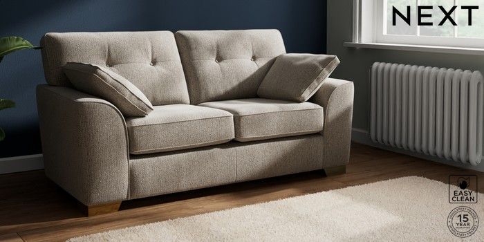 7.2.10 Stamford Buttoned Back Sofa Bed Chunky Boucle Easy Clean Dove Large Square Angle - Brushed Brass | Made Click here to use our website with more accessibility support, for example screen readers