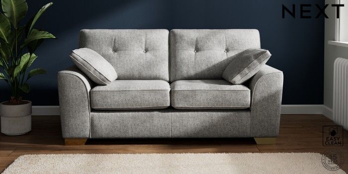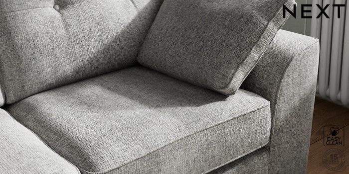 7.2.10 Stamford Buttoned Back Sofa Bed Chunky Boucle Easy Clean Light Grey Large Square Angle - Brushed Brass | Made Click here to use our website with more accessibility support, for example screen readers
