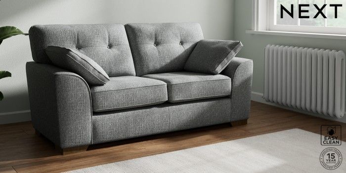 7.2.10 Stamford Buttoned Back Sofa Bed Chunky Boucle Easy Clean Mid Grey Large Square Angle - Mid | Made Click here to use our website with more accessibility support, for example screen readers