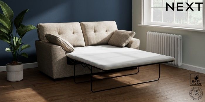 7.2.10 Stamford Buttoned Back Sofa Bed Chunky Boucle Easy Clean Mid Natural Large Square Angle - Dark | Made Click here to use our website with more accessibility support, for example screen readers