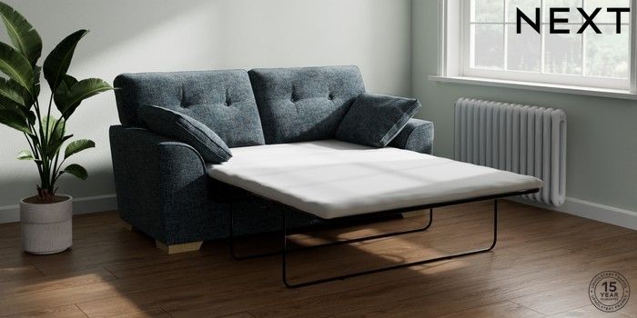 7.2.10 Stamford Buttoned Back Sofa Bed Chunky Chenille Dark Navy Blue Large Square Angle - Light | Made Click here to use our website with more accessibility support, for example screen readers