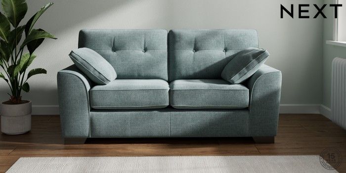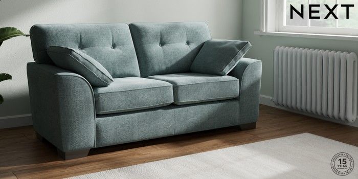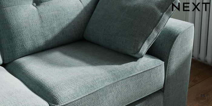 7.2.10 Stamford Buttoned Back Sofa Bed Chunky Chenille Light Teal Green Large Square Angle - Gunmetal | Made Click here to use our website with more accessibility support, for example screen readers