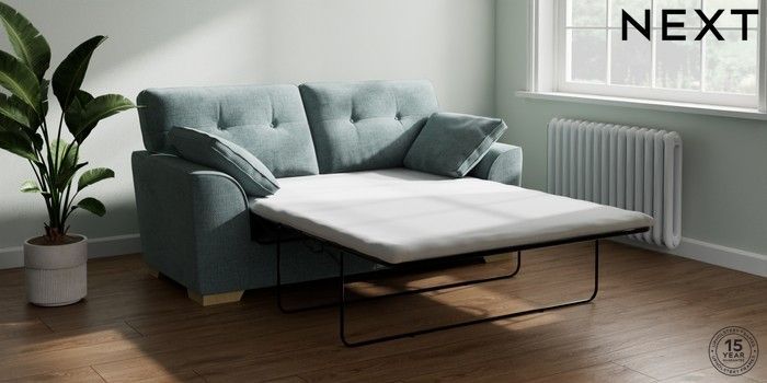 7.2.10 Stamford Buttoned Back Sofa Bed Chunky Chenille Light Teal Green Large Square Angle - Light | Made Click here to use our website with more accessibility support, for example screen readers