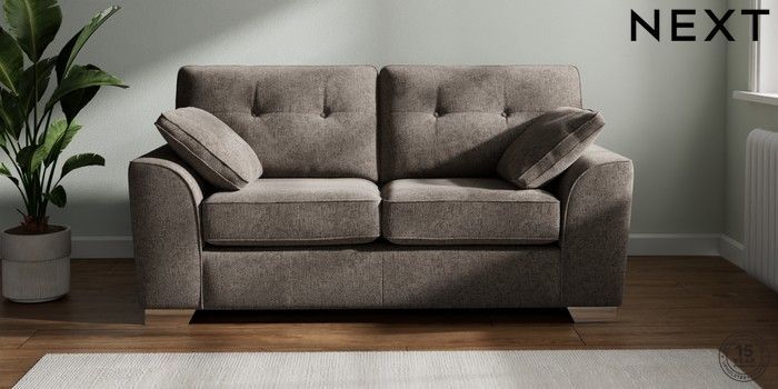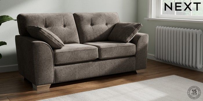 7.2.10 Stamford Buttoned Back Sofa Bed Chunky Chenille Mink Brown Large Square Angle - Chrome Metal | Made Click here to use our website with more accessibility support, for example screen readers