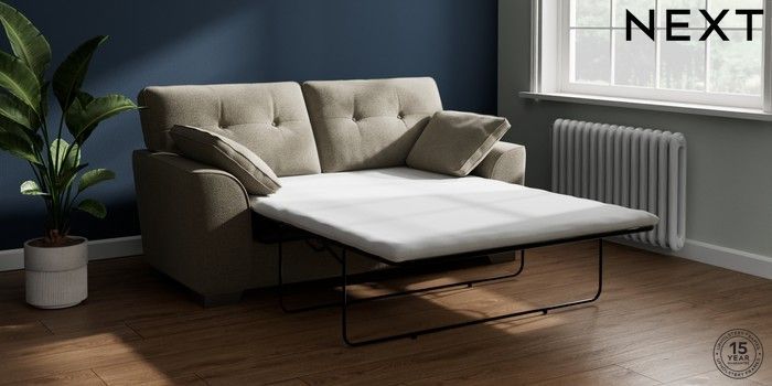 7.2.10 Stamford Buttoned Back Sofa Bed Chunky Marl Light Olive Green Large Square Angle - Gunmetal | Made Click here to use our website with more accessibility support, for example screen readers