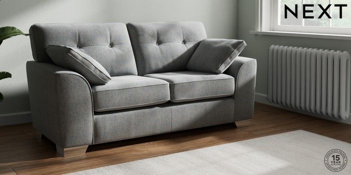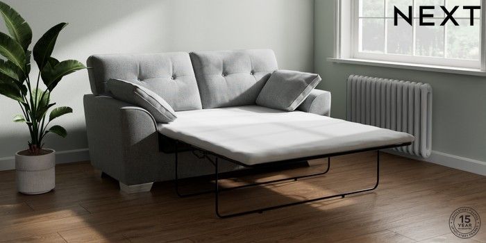 7.2.10 Stamford Buttoned Back Sofa Bed Chunky Marl Mid Grey Large Square Angle - Chrome Metal | Made Click here to use our website with more accessibility support, for example screen readers