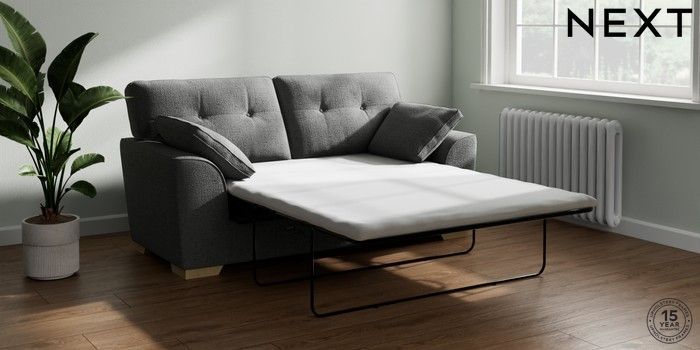 7.2.10 Stamford Buttoned Back Sofa Bed Chunky Texture Dark Grey Large Square Angle - Light | Made Click here to use our website with more accessibility support, for example screen readers